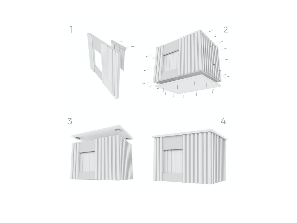 A kenneleket kibontva szállítják. A kennelfalakat egy összeszerelő készlettel együtt kapja meg, amely tartalmazza a csavarokat és a részletes eljárásokat tartalmazó kézikönyvet. A kutyafuttató grafitfestékkel készült. Javasoljuk, hogy a kenneleket színtelen lakkozással is fessék le.