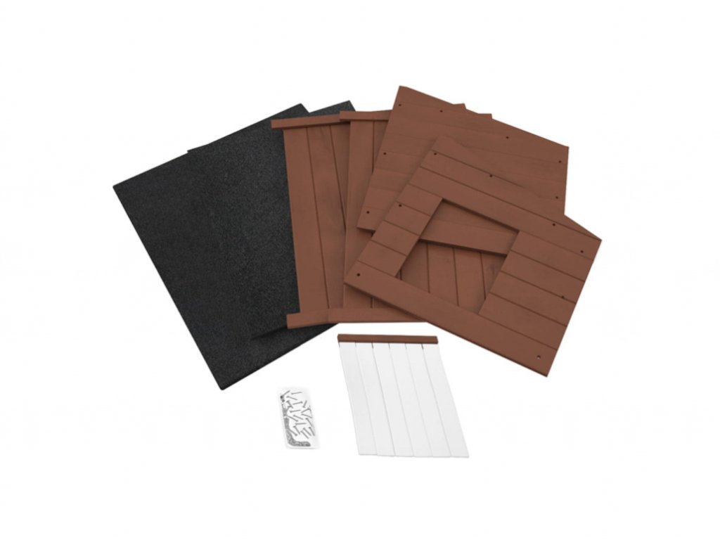 A kutyaházat kibontva szállítjuk. A kutyaház falait egy összeszerelő készlettel együtt kapja meg, amely csavarokat, használati utasítást és 300 ml faanyagvédőszert tartalmaz. A kutyaházat a mellékelt színes faanyagvédővel kell lefesteni.